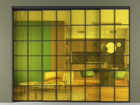 Перегородка Formato внутри проёма 4 створки с синхронным механизмом